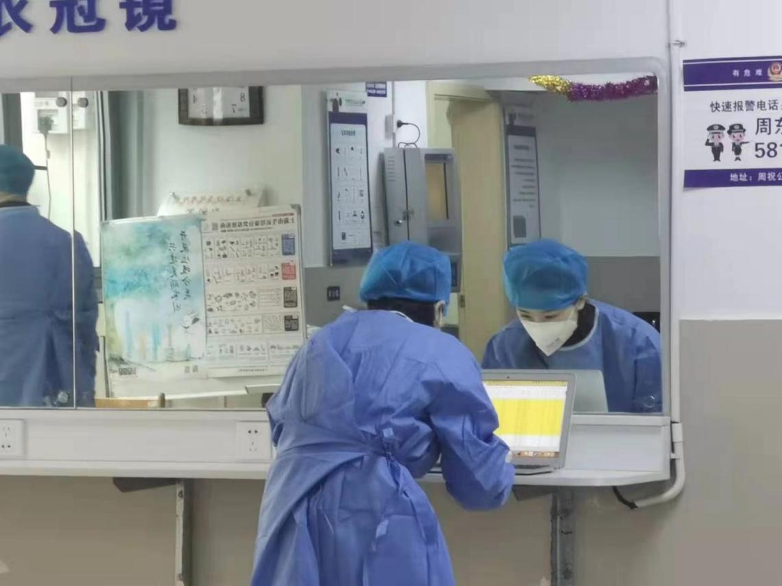 护理与健康管理学院胡雪东老师也在抗疫一线的队伍中,与所有的师生共进退,在此次临时管控中,统筹管理北苑12号楼的事务安排,她忙里偷闲接受采访时说道:“作为上海健康医学院一名辅导员,坚守一线是我的职责所在,每一位老师都在各自的岗位中默默付出着。其实这次能够有机会和孩子们真正意义上的同吃同住同生活,对于我来说是非常宝贵的。我们从3月17日凌晨到现在,每天一大早校领导和院长们就站在楼前为我们所有人保驾护航,最近上海的天气大风夹杂着小雨,核酸检测的医护人员存放医用垃圾的塑料袋都要绑着几层胶带固定,但所有人都义务坚守在岗位上,领导们一站就是一上午,陪伴着我们。作为楼内保护孩子们的我们,基本上每天早上都是5:00起床,准备分发早餐和核酸检测工作,全天都没时间能坐下休息一会儿,但每一句:‘谢谢老师、老师辛苦了',我真心感觉没有什么是战胜不了的。”