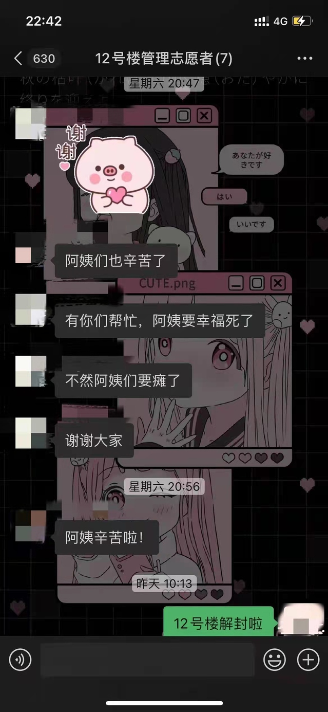 有楼宇封控期间,第一时间亮出小橘子身份,主动上岗,帮助宿舍阿姨分发餐食的“小橘子”。