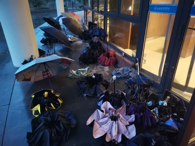 雨天在食堂门口默默为同学们摆好雨伞的“小橘子”
