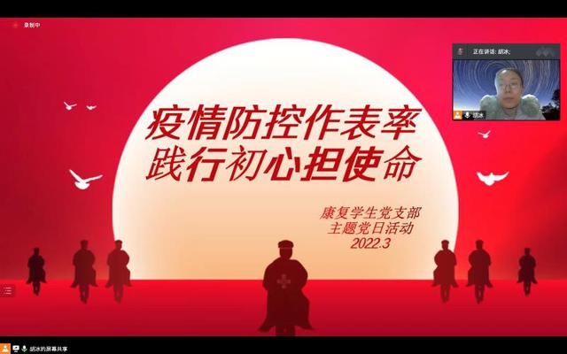 3月25日,康复学生党支部开展了“疫情防控作表率,践行初心担使命”为主题的主题党员活动,会议由支部书记胡冰主持。