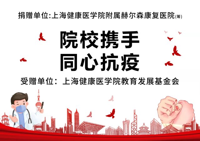 上海健康医学院附属赫尔森医院的支持不仅是院方的的社会责任和担当,更是对学校奋战在“停课不停学”一线的全体教职工的精神鼓舞。我们将用好这笔捐赠物资,凝聚全校师生战疫决心和信心,全力以赴,打赢防疫阻击战。(康复学院)