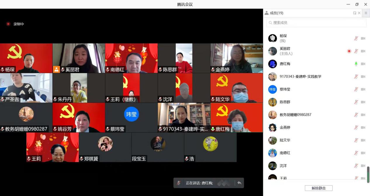 随后,支部党员分别汇报了个人居家隔离与办公近况。支部100%的党员第一时间在“先锋上海”进行报到,不少党员已经积极参加社区党员志愿者、组织社区核酸检测、帮助社区独居老人、利用专业知识开展防疫科普等工作。同时,在坚持抗疫的同时,支部党员坚持坚守岗位履职尽责,确保学校全日制、非全日制教学工作平稳有序。