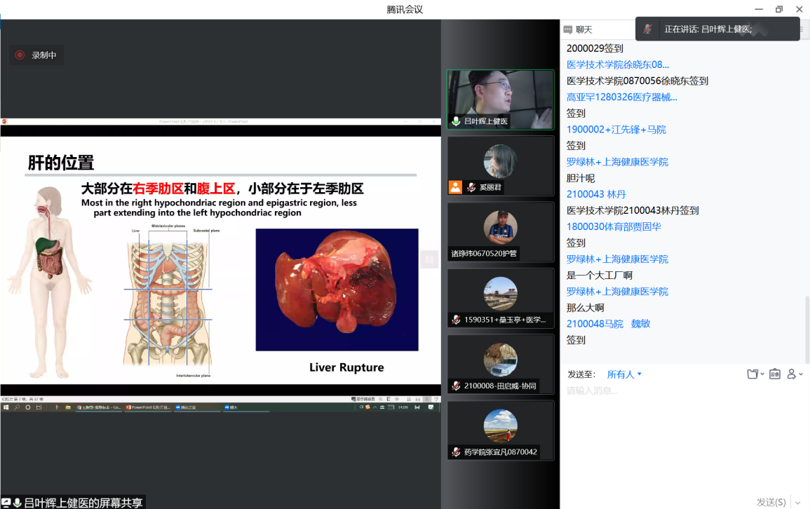 培训会上,基础医学院吕叶辉老师邀请10名学生共同演示了《人体的构造I- 肝》线上教学示范课。吕老师以人体肝脏功能为导入,从病例、病理举例分析、逐步引导学生进入课程的主题,获得了与会教师的一致好评。随后,校级教学督导专家周进祝教授在肯定和总结吕老师授课的基础上,与参会教师就“如何上好一堂课”开展研讨与分享。他从教学思考角度、课前准备、教学课堂和课后拓展等方面进行深度探讨与解析。