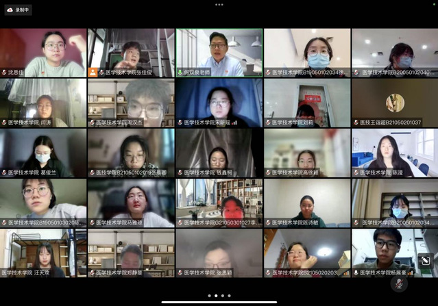 2022年4月6日,为了更加有效地落实学校疫情防疫工作,根据学校党委组织部的安排,围绕抗疫卫士的责任与担当,医学技术学院2022年春季入党积极分子培训班第五小组就此召开了线上交流会。由疫情防控期间新南苑首任综合办主任、校纪委副书记、人事处处长郑学文担任嘉宾,医学技术学院党总支委员、组织员何双泉主持会议。沈思佳、陈滢两位党员及54名学员在线参与。