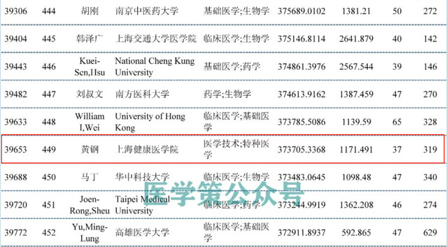 其中,中国在医学领域有1799人上榜,占中国入选科学家的14.7%。作为核医学界的杰出代表,我校上海市分子影像学重点实验室黄钢教授此次列全球39653位、中国449位(前40%),能位列其中实属不易,说明我国核医学领域的发展有了长足的进步。