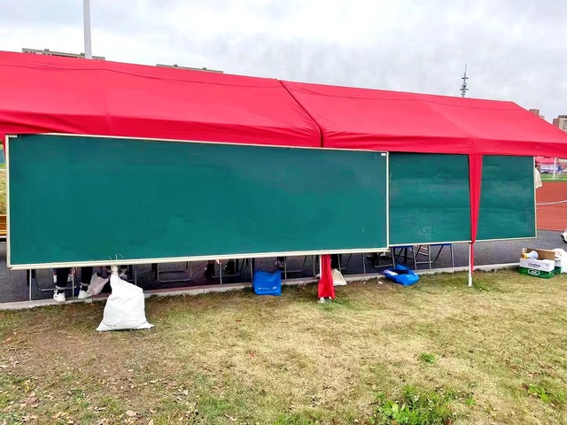 3月14日至今,上海健康医学院从严格校园管理到准封闭管理,已经一个多月。在此期间,全校师生齐心协力,每个人都在用自己的方式在校园、社区不同岗位上努力发光发热,同心战“疫”。从4月4日开始,按照上级疫情防控要求,全校每日全员核酸检测。4月12日,风雨交加,为当天的核酸检测工作带来不便,北苑区后勤保障部门紧急出动,利用闲置黑板在核酸入口签到处筑起一道风雨屏障。