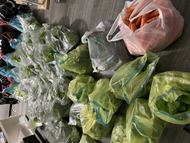 绿地乐和城是商业楼,没有居委会直接管理,两栋楼有500户左右的人家,如果挨家挨户敲门不仅工作量大,人力不足效率低下,并且也打扰到普通居民的生活,在物业的帮助下,潘凯凯以学生的身份赢得居民信任,通过微信群聊对楼栋老人的居住情况进行了统计。接着,他通过学长提供的渠道,在自有资金有限的情况下,按照分配物资至少能生活三天以上的捐赠方案采购了杭白菜、生菜、黄瓜、胡萝卜等100多斤蔬菜,为了做好疫情防控,潘凯凯对物资商家进行了多次辨认、购买了消杀物资和防护服并向物业部门提前报备。经过前期的辛苦付出,最终成功为20户老人配送了生活物资。