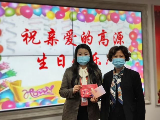 唐红梅对高源在疫情防控期间的努力工作给予充分肯定,对她忘我工作,舍小家顾大家,守护校园健康平安所付出的努力表示高度赞扬,并代表学校领导向她送上生日祝福。