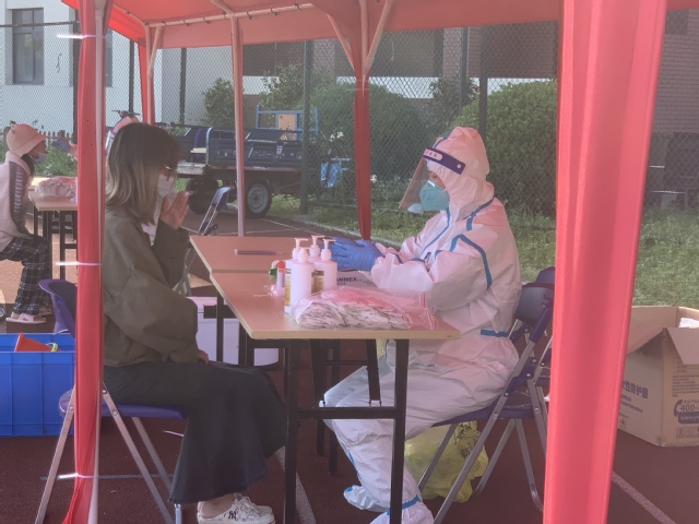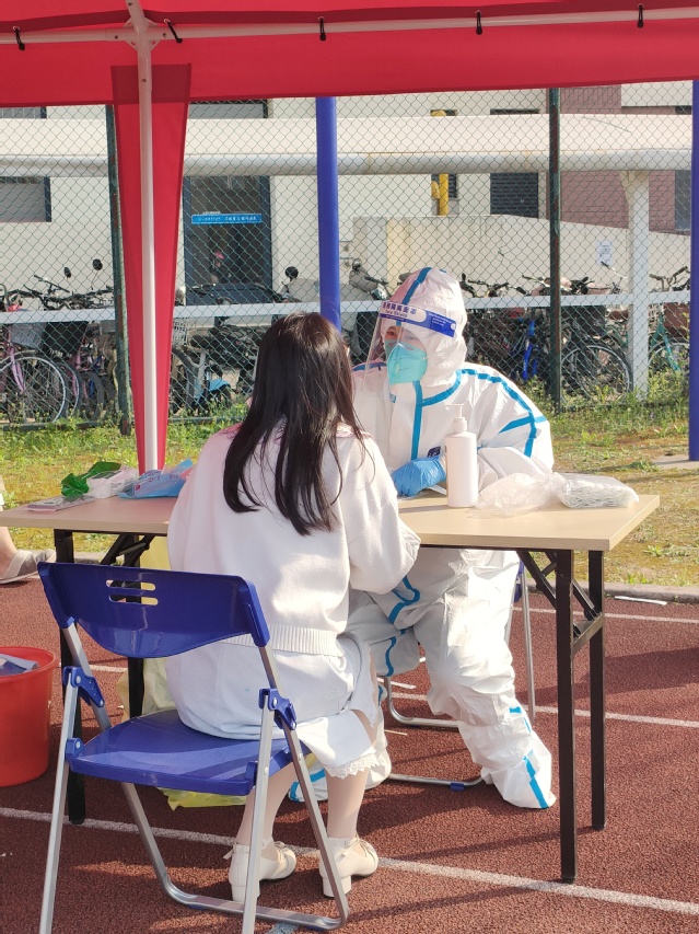 自学校准封闭管理以来,学校附属崇明医院的医护人员一直负责我校核酸检测工作,当医护人员摘下口罩时,满脸都是深深的印记和红纹。在工作的时候,她们尽量