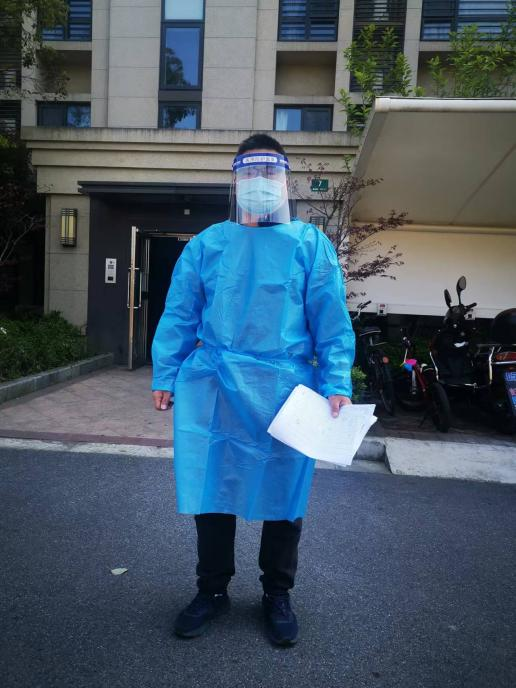 辅导员杨宇海老师刚刚从学校的抗疫一线下来,目前正在担任小区志愿者。接到学校的号召,面对刚出生几个月的儿子,这次他毅然第一时间响应:“一名党员,就是一面旗帜。这一面面旗帜的展开将汇聚成上海抗疫成功的胜利大旗,希望能力有所及地为上海出一份力。”