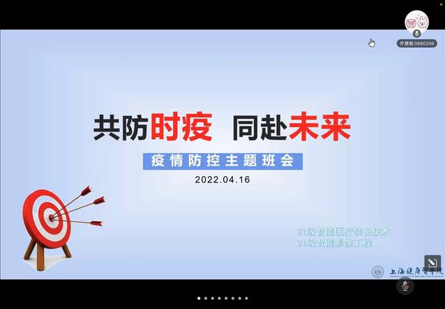 3月中旬以来,上海疫情形势复杂严峻,为打赢疫情防控攻坚战,进一步扎实做好疫情防控工作,医学影像学院党总支充分发挥各方合力,强化学生纪律意识,关心关爱学生,落实学校有关要求,切实加强管控期间学生思政教育和价值引领,开展齐聚“云班会”主题活动。