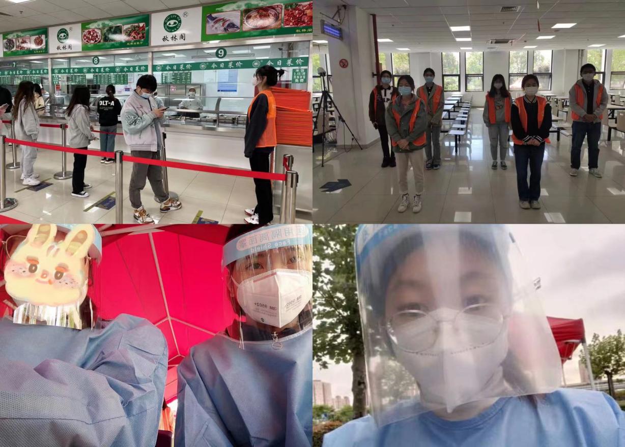 在辅导员杜学礼老师的感召、班委集体的模范带头下,20级助产班的同学闻令而动、主动请缨,留守学校的53名同学中有39人主动报名,在志愿者登记表上留下了自己的联系方式,并集体表示服从志愿者老师及学生负责人的安排,积极投身到学校的各个岗位中去。如赵伊利同学作为餐饮志愿者,负责天猫超市的限流工作等工作;徐露佳同学加入了南苑餐饮志愿者服务组,承担着对食堂二楼排队进行人员疏导的任务,让买饭的同学保持“安全距离”,她们心中有爱、眼中有光,为校园疫情防控默默贡献着自己的力量。随着校园疫情防控形势更加严格,同学们在无法外出的情况下,大家又在宿舍楼里主动做起了志愿者,如朱筱雯同学不畏风险、踊跃报名,成为所在楼宇核酸扫码志愿者,维持核酸检测秩序;赵雪如和徐欣然同学迎难而上,与其他志愿者默契协作,分别负责给3层和11层的同学发餐、引导同学们做核酸检测等工作;申桂香同学临危不惧、承担起了所在楼宇全体同学的核酸签到等任务。她们用责任与汗水诠释着“青春”的力量,于疫情一线绽放她们的铿锵芳华。同学们这种大无畏的精神、勇于奉献的实际行动,得到了校团委的高度肯定和表扬。