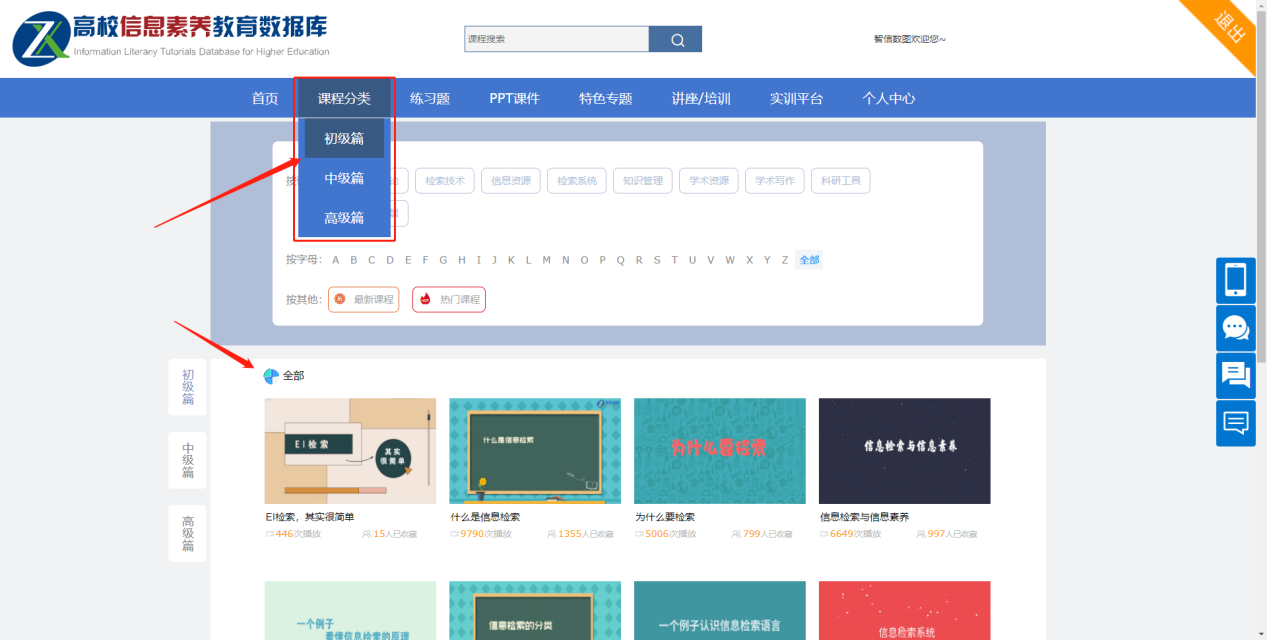 根据课程分类的初、中、高级依次学习微视频课程,做课后练习。