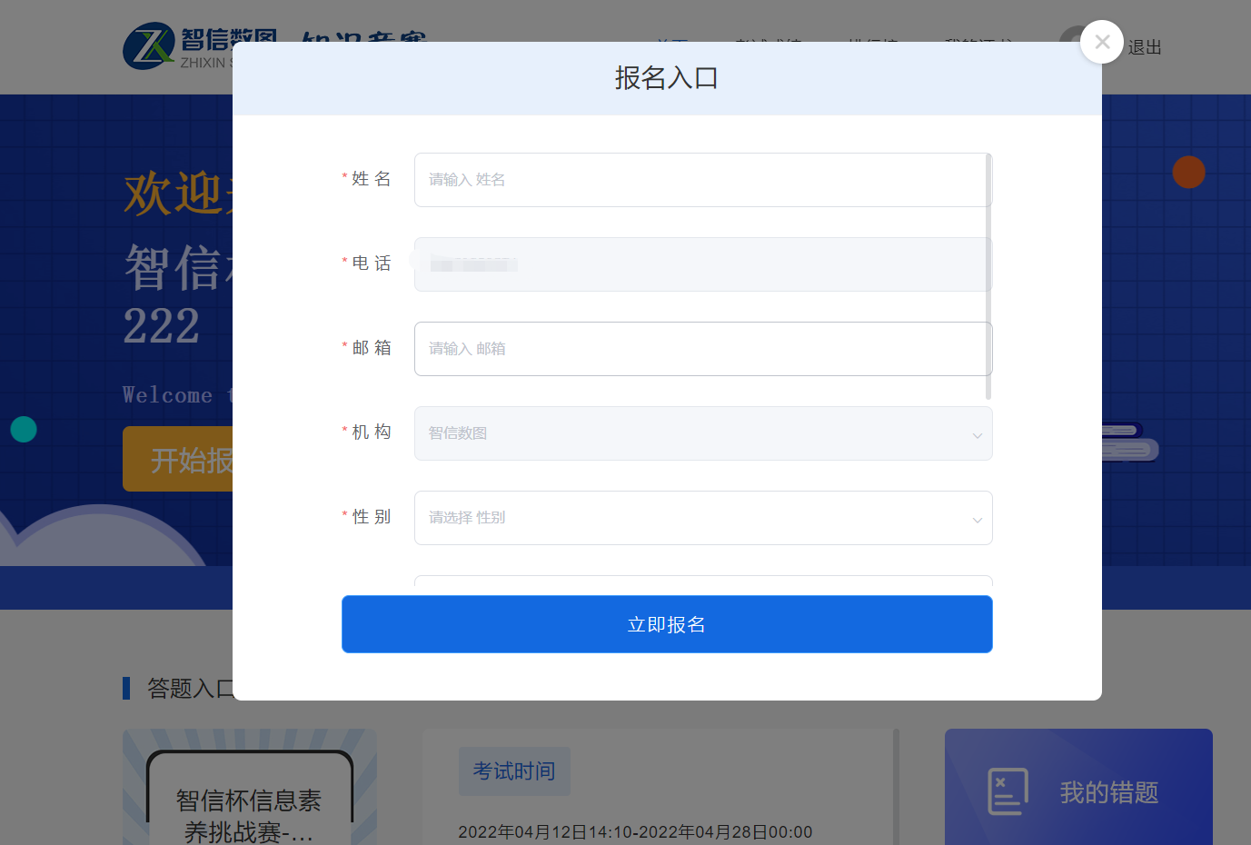 进入竞赛系统后,可在相应的时间点进行报名和答题。