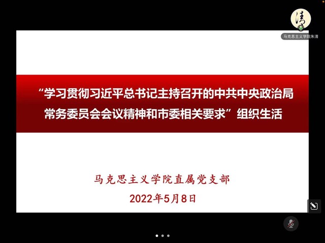 58日下午,马克思主义学院直属党支部通过腾讯会议室开展组织生活,学习贯彻习近平总书记主持召开的中共中央政治局常务委员会会议精神和市委相关要求,马克思主义学院直属党支部全体党员参加会议,会议由马克思主义学院直属党支部副书记、院长孙玉良主持。