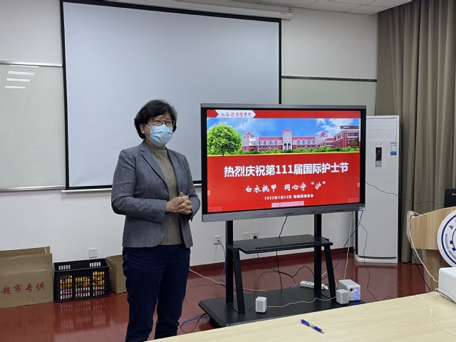 当晚7时,新南苑区综合办在大学生发展中心211会议室举办“白衣执甲 共同守‘沪’”庆祝国际护士节慰问活动,校党委副书记于莹,党委宣传部部长李兆伟,综合办主任杜峥,附属崇明医院护师郁爱峰、庞俐丽,校医务室沈佳欢老师,学院负责人,综合办工作人员和学生代表线上线下结合方式参加活动。科技处孙吉老师、科研助理杨梦菁老师主持活动。