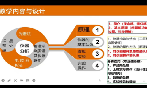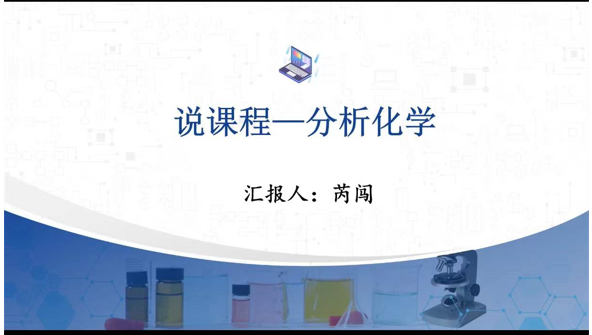 芮闯老师就专业课程《分析化学》进行了说课,课程着重体现“两性一度”的教学设计理念,运用线上线下混合式教学模式开展课程教学。从《分析化学》课程的地位特点出发,阐述了前导后续知识衔接,结合知识、能力、素养三大目标和学情,提出了低阶→高阶→创新的教学理念。结合线上学习平台,运用CBL、PBL等教学方法和虚拟仿真实验操作平台,有效开展线上线下混合式教学。在教学中适当融入岗位职业能力要求和严谨科学研究态度作为思政元素,组织课程思政教学。通过细化考核指标,优化考核模式,充分体现学生投入和产出比与知识掌握程度,教学效果良好。