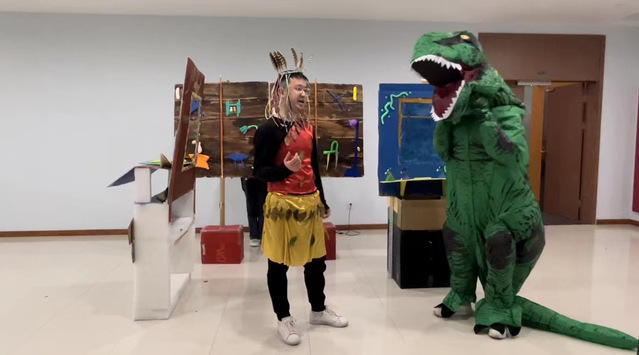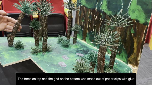 3月突如其来的疫情封控,打乱了队员们备赛2022年OM线上世界赛的节奏。在面临严峻的疫情挑战时,作为医学生,大多参赛队员都义不容辞地奔赴抗疫一线,参加防疫志愿者工作,有的担任抗原检测志愿者,有的负责维持核酸检测秩序等。在完成志愿者工作之余,队员们积极备战世界决赛,利用碎片时间进行了多次线上讨论剧本道具、交流解题思路并修改方案。例如,在工程类赛题中,为了节约时间和控制成本,队员们省去体积较大的道具设计,巧妙地设计了一个主舞台和一个微观舞台,并将评分点中“回形针的使用”运用在微观舞台的搭建上,用回形针制作成不同的景观,以此达到不同景别之间的来回转换,调动观众的视觉感官。比赛过程中,队员们展现了极强的创造力、表现力和团队协作能力,最终富有创意的参赛作品获得了裁判们的一致好评。今年的古典类赛题与以往不同,主题是音乐剧,因此除了道具和剧本的完善,音乐风格也是相当重要的一个部分。参赛队创新采用翻转背景板的方式,在背景板的正反两面都做了设计,其中利用麻绳围成高脚杯、碗、帽子以及展览柜里的展览灯等立体物品道具,贴合音乐剧中原始部落的“原始感”,在国际赛中受到评委的好评。