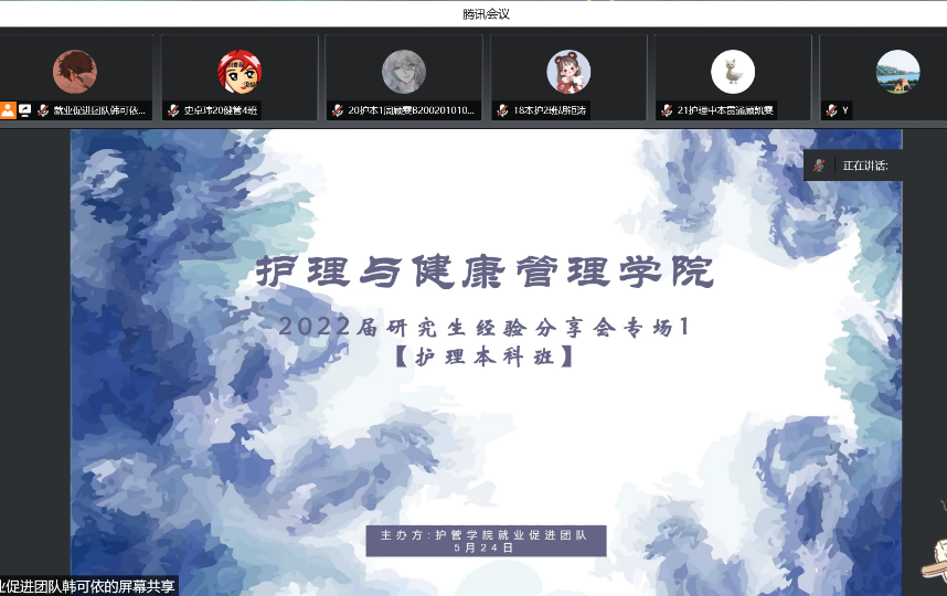 每年我们都能看到许多成功考研的学子,在赞誉他们取得的佳绩之时,也不忘向他们汲取学习的经验与方法,为此护理与健康管理学院学生事务部就业促进团队于5月24日至5月26日分别开展了三场线上考研经验分享会,共邀请了九位成功考取硕士研究生的同学们分享了他们在考研过程中积累的成功经验及心得。