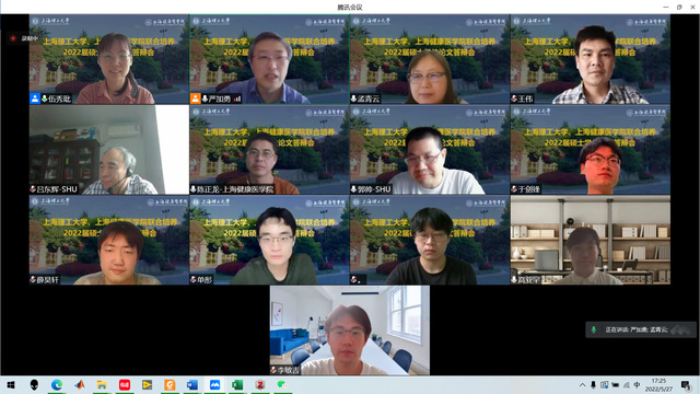 5月27日-28日,医疗器械学院2022届联合培养研究生答辩会在线上顺利举行,李晓欧、刘巧红、陈正龙、严加勇、孟青云、高亚罕6位导师的10位研究生参加答辩,他们分别是杨越琪、郑小涵、朱岩、刘佳伟、刘存珏、薛昊轩、李敏吉、郭国栋、于剑锋、单彤,同时邀请了上海大学、上海市杨浦区精神卫生中心、恩识医疗科技(上海)有限公司、上海市医疗器械检验研究院等单位专家组成答辩委员会。论文内容涵盖了便携式脑电调控系统设计、非接触式生理信号检测、医学图像自动分割和重建算法、呼吸机潮气量控制系统设计、手功能康复训练系统、多特征融合脑电信号情绪识别、超声心动图斑点跟踪算法、甲状腺三维可视化系统等方面的研究。