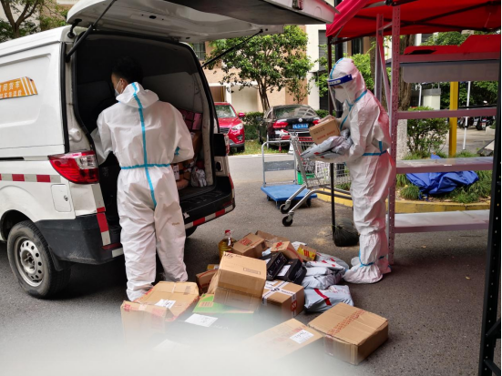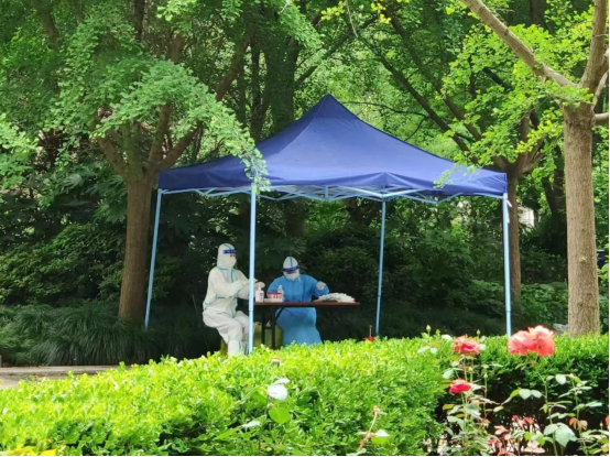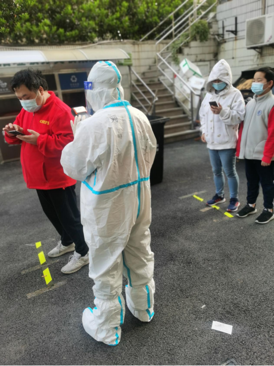 抗疫是战场,任何人都不容懈怠。作为党员志愿者,潘彩勤老师在小区管控岗,坚守岗位,检查每一位快递员和送货人员的核酸或抗原信息,核对团购物资,核查保供资质,引导团长签订承诺书等,守住小区防控第一关。丁静林老师同样是在小区大门口志愿者岗位,负责收发、消杀快递,她对这个岗位深有体会:“收发快递看似简单,却需要充足的体力和丝毫不容懈怠的防护意识,同时还要有足够的耐心和沟通能力,以劝说居民非必要不外卖、不团购,以及快递消杀静置半小时后再取走……”自4月底以来,她每天四小时不间断地工作,到结束时都腰酸背痛;但在工作中收获的思想感悟和居民的肯定,让她非常珍惜下沉社区的机会。