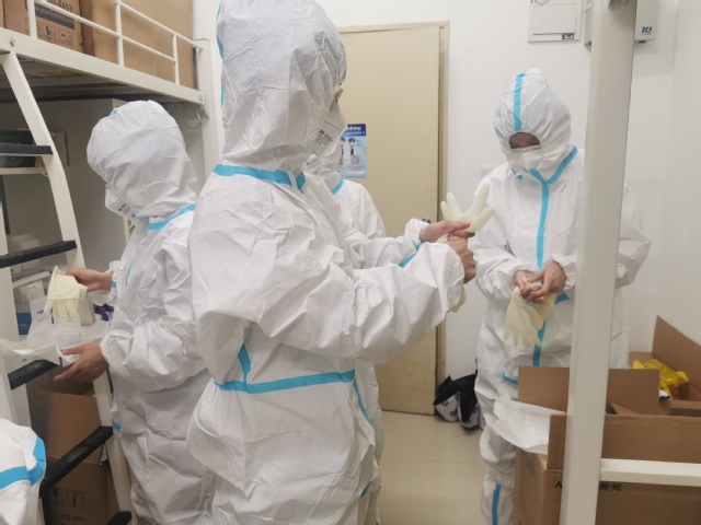 在上岗实践培训期间,同学们跟随附属崇明医院的3名医护人员掌握了很多操作技能,其中包括穿防护服、正确佩戴护目镜、N95口罩、内外层手套、头套,脚套等。接着就是学习了采样最重要的口咽、鼻咽拭子的采样方法、棉签的握法,采样部位等,其中鼻咽拭子的学习比较难以把握,所以为了更加熟练掌握鼻咽拭子的采样方法,同学们晚上在寝室里互相采样练手。每天学习、实践操作内容繁多,但是同学们始终保持积极饱满的精神状态来迎接每天的培训和操作。同学们表示:只要学校需要我们坚守,我们就安安心心坚守岗位,请学校放心,岗位有我,健康有我,竭尽全力守护学校平安,为学校的疫情防控常态化管理贡献绵薄之力。