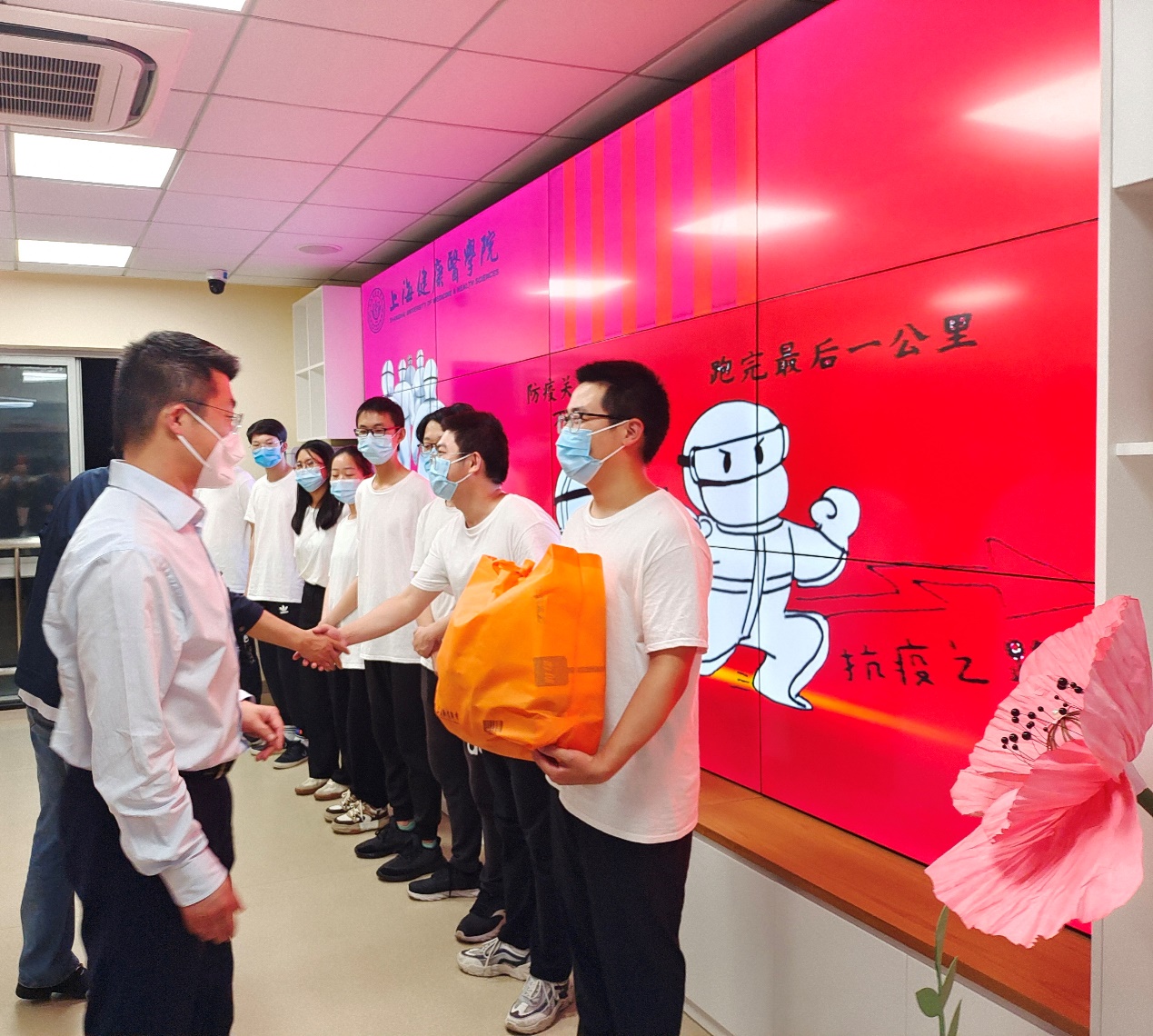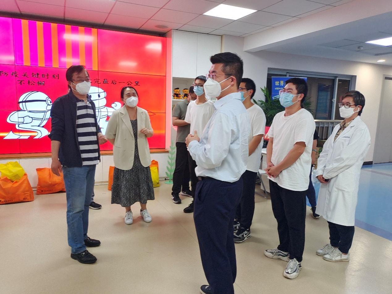 5月31日晚上,校长吴韬、副校长陈小冰赴北苑9号楼慰问“核酸采样小组”的同学们。学校防控办副主任、后勤处处长张美蓉,北苑综合办主任董伟峰,学生处副处长(主持工作)吕晓丽,资产处副处长邢寰宇,党校办副主任于杨,医务室主任陈建萍,护管学院院长朱爱勇等参加了本次活动。学校领导为同学们准备了丰富的生活用品和零食饮料,并亲自交到每一位同学的手中。校领导们高度赞扬了同学们的奉献和担当精神,表扬大家是封校期间“最值得尊敬的人”,同时校领导也十分关心大家的学习和生活,逐一询问了同学们未来的发展规划和生活需求,并强调学校将全力保证物资供应充足,叮嘱大家在为学校防疫做贡献的同时,一定要做好自身防护,保证自身的安全和健康。