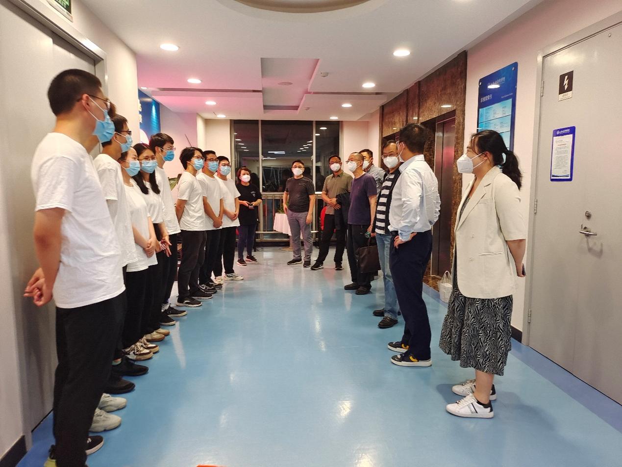 “核酸采样小组”大组长谢远航同学代表大家向校领导和老师们的到来表示了衷心的感谢,并表态一定会以最严格的防控标准、最规范的操作流程、最专业的技术水平,保质保量地完成这项严肃而又重要的任务,请学校领导和老师们放心!