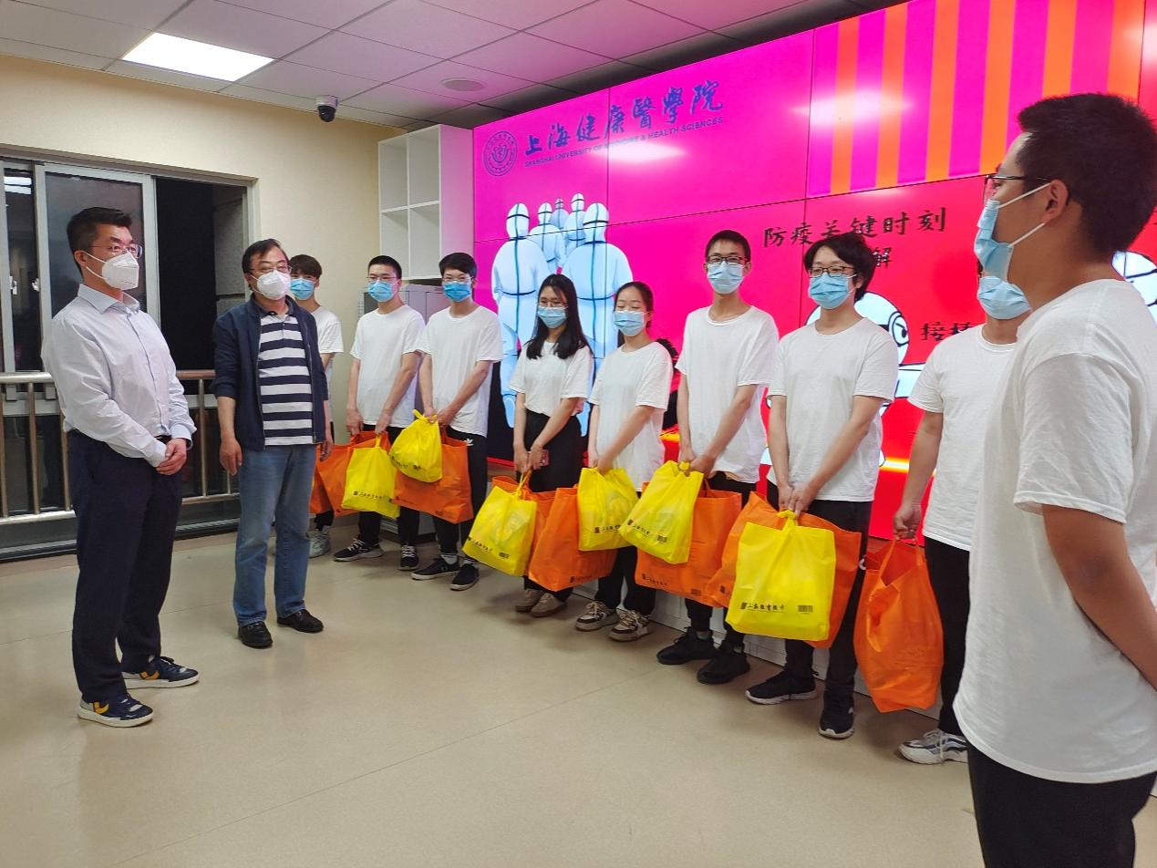 经过两个多月艰苦卓绝的奋战,上海健康医学院迎来了一个特殊的“六一”。5月31日下午,驻守我校70天的附属崇明医院的8位“大白”医护人员光荣完成使命,将乘车返回崇明,“大白”老师们与“小白”志愿者们深情道别,上车前还不忘叮嘱大家要时刻注意操作中的每一个细节。北苑“核酸采样小组”的9位志愿者,分别由护理与健康管理学院的谢远航、唐致椿、刘鑫、蒋佳慧、李胜遥和田梦昭6位学生以及医学技术学院的伍松、林佳如和齐建国3位学生组成,他们经过理论培训,见习实习,顶岗实践等9天的轮训,终于在“六一”这个特殊的日子正式接棒上岗。