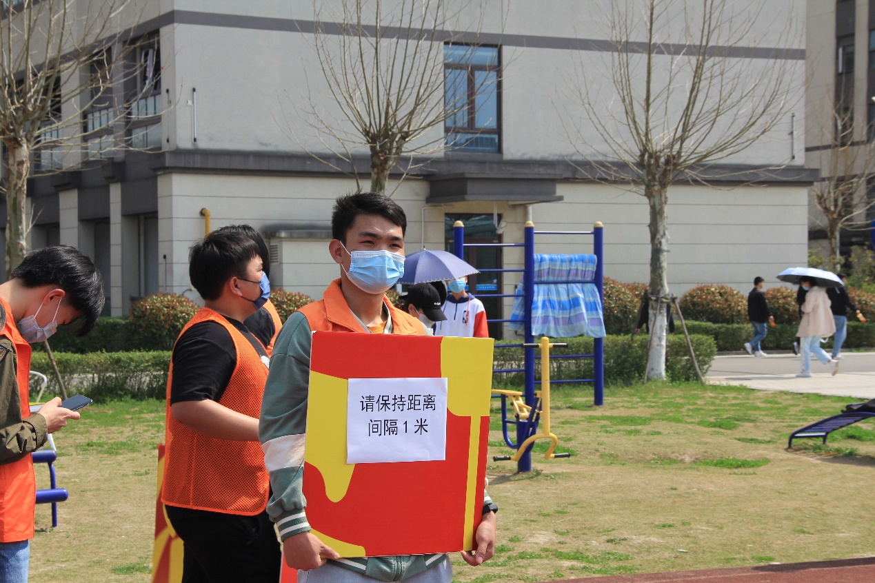 来自19级临床工程技术(本科)4班的肖吕耀同学积极响应学校号召,担任南苑b2组机动志愿者,积极完成南苑核酸检测志愿者服务工作,主要负责让核酸等候区的同学规范佩戴口罩,保持一米间距,轮换志愿者工作。他说核酸人员较多,需要很多志愿者帮忙,于是他积极参与到其中,在过程中践行了“奉献、友爱、互助、进步”的志愿者精神。他说疫情终将散去,坚信春天总会到来。