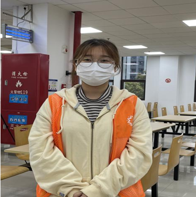 作为19级临床工程技术(本科)三班的入党积极分子,戴冰钰同学积极响应学校号召,担任此次南苑志愿者总负责人。在疫情防控阶段,保证南苑各组志愿者工作有序进行,每日负责巡查、对接以及汇报各组工作情况,并且保证每日应测核酸志愿者人数全部测完。在防疫工作期间,也遇到了各种各样的问题,但戴冰钰同学并未慌乱,作为区长,有条不紊地安排处理,有效解决。她说:“首先我觉得志愿者并不是一种光环,而是一种责任,要时刻走在前面,要发挥先锋模范的作用,相比那些在一线奋战的英雄们,这些事情真的很微不足道。”作为医疗器械学院的一名学生,她在疫情防控的关键时期,彰显了新时代大学生的良好精神风貌和责任担当,“我想证明疫情当前大学生志愿者们没有退缩,而是勇敢冲在前面,我相信,只要我们团结一心,不畏艰难,定会战胜这次疫情!”
