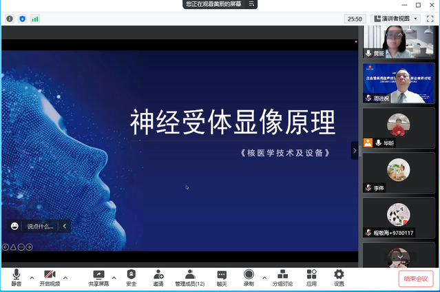 首先,黄辰老师进行了20分钟的主题为《神经受体显像原理》的课堂教学。黄辰老师围绕帕金森病的发病机制、检查方式等进行深入浅出地讲解,整个教学过程层层递进,清晰透彻,展现了良好的教学设计和教学基本功。接着,周进祝教授围绕黄辰老师的教学,从课件的细节、课程内容、课程思政、语言、教态、板书等多个方面进行了专业的点评,并提出了很多中肯的建议,与会的每一位老师都收获颇丰。