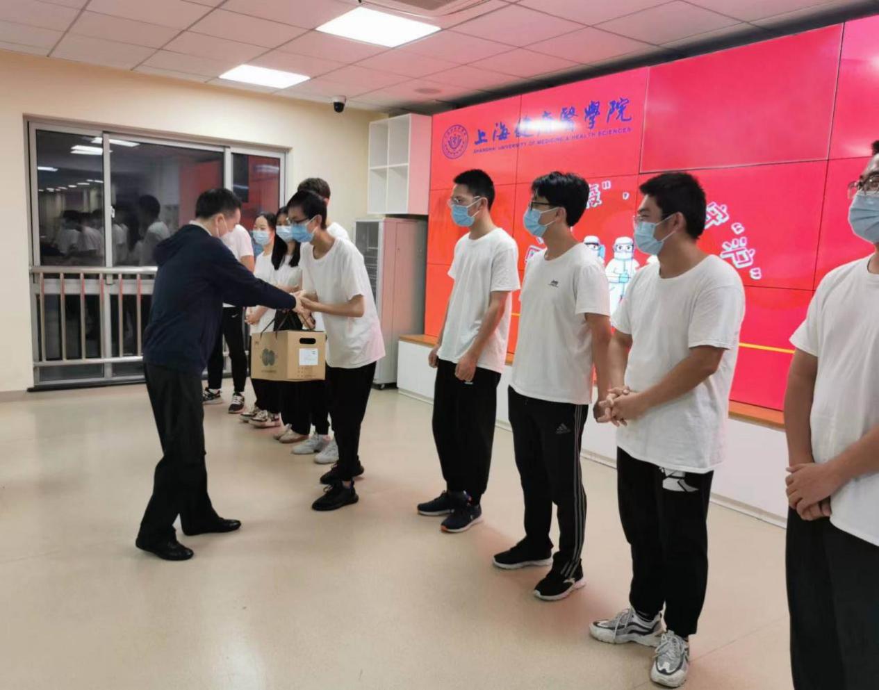 6月10日晚上,校党委副书记、纪委书记李明磊带队前往北苑9号楼看望“核酸采样小组”的同学们。北苑综合办主任施奇、护管学院党总支书记郭戎静、医学技术学院党总支书记刘敏娟、校团委书记顾斐雯、医学技术学院党总支副书记高晓霞、护管学院党总支副书记薛文正等参加了本次慰问活动。