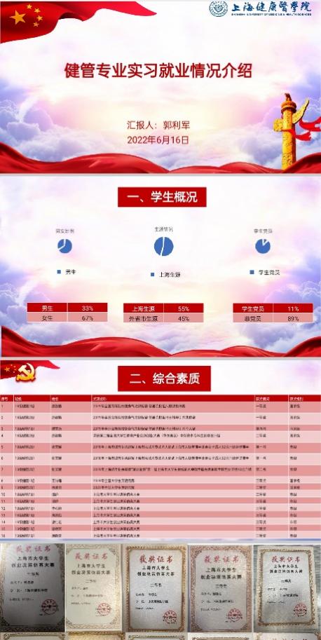 朱爱勇首先对各位企业领导多年来对学院人才培养的支持表示了感谢。会上,万广圣从健管专业的专业概况、培养方案设计、实践教学设计和实习就业一体化建设四个方面进行了介绍,突出了紧紧围绕应用型人才培养目标,对照国内外同类专业的课程设置,积极吸纳行业专家和潜在用人单位的意见,构建以能力为本的课程体系,提出了德技并重、需求主导、能力本位,夯实医学基础、强化专业技能、突出特色方向的一体化建设目标。随后,2022届健管专业辅导员郭利军对2022届健管专业的学生概况、综合素质和实习就业情况进行了介绍,展示了健管专业学生的风采。