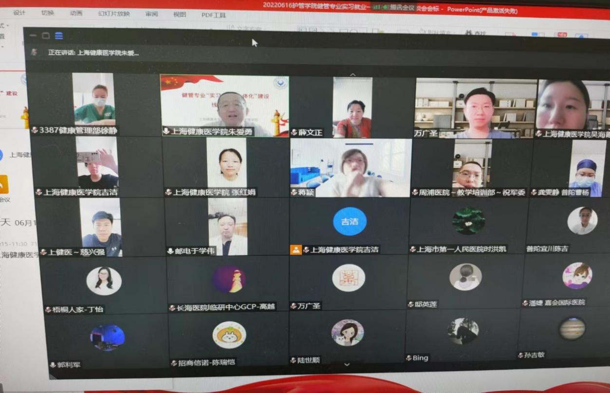 长期以来,用人单位对我校护理与健康管理学院健康服务与管理本科专业学生培养工作给予了大力支持,为加强沟通交流,进一步提升人才培养质量,为用人单位输送高素质应用型人才,6月16日上午,护管学院举办健康服务与管理专业“实习-就业一体化建设”线上座谈会。上海市邮电医院、曹杨社区卫生服务中心、中国太平保险集团等13家用人单位的人力资源部门负责人莅临会议,上海健康医学院党委副书记、副校长唐红梅出席会议并指导;学生处副处长吕晓丽(主持工作)、副处长慈兴强,护管学院党总支书记郭戎静、院长朱爱勇、副院长蒋颖、副院长万广圣、党总支副书记薛文正和2022届毕业班辅导员参加。朱爱勇主持会议。