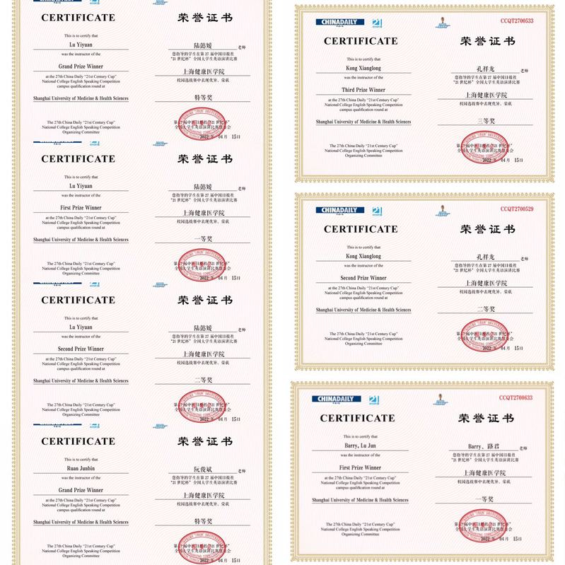 第27届中国日报社“21世纪杯”全国大学生英语演讲比赛上海赛区决赛中,在与复旦大学、上海外国语大学、华东政法大学、东华大学、上海师范大学等沪上知名高校同台激烈竞争中,我校2020级医学影像技术专业李祎、2020级生物医学工程专业高艺萌两位选手不畏强手如云,表现突出,最终荣获上海市三等奖。