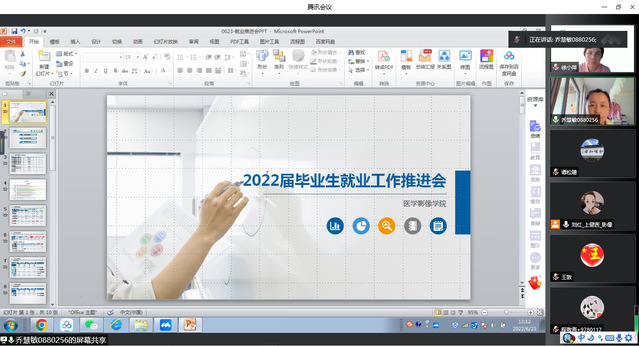 为深入贯彻党中央、国务院“稳就业”“保就业”决策部署,全力保障2022届毕业生顺利就业,6月23日下午,医学影像学院召开毕业生就业工作推进会,学院领导班子成员、教研室主任、骨干教师、毕业班辅导员参加会议,会议由党总支书记刘红主持。