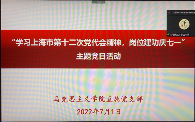 7月1日晚,马克思主义学院直属党支部通过腾讯会议室组织“学习上海市第十二次党代会精神,岗位建功庆七一”主题党日活动,马克思主义学院直属党支部全体党员参加会议,会议由马克思主义学院直属党支部副书记、院长孙玉良主持。