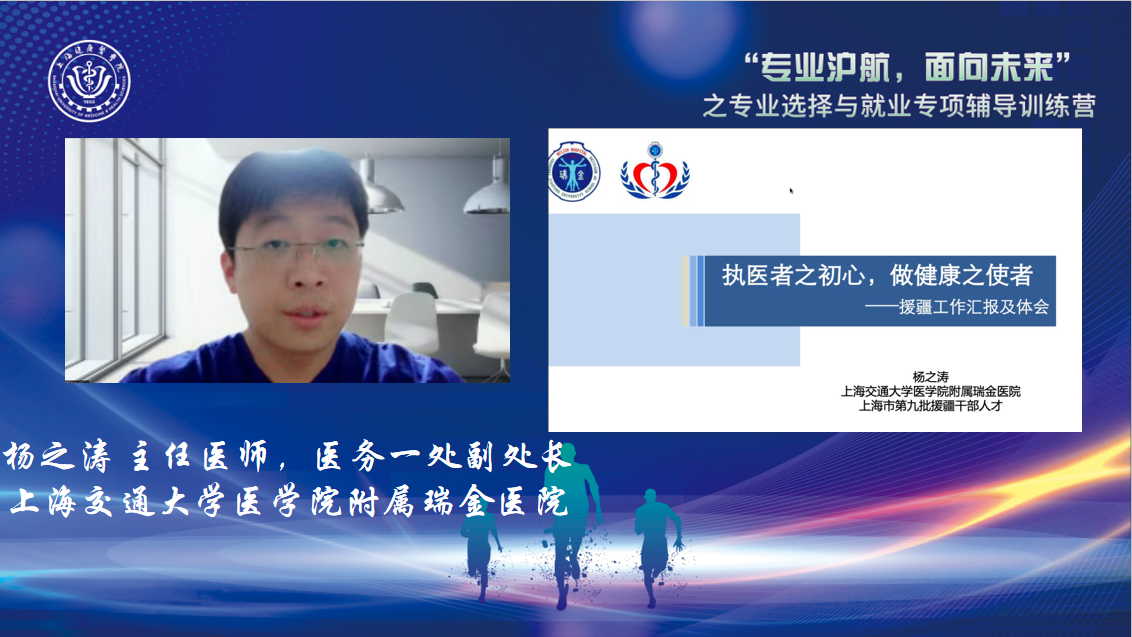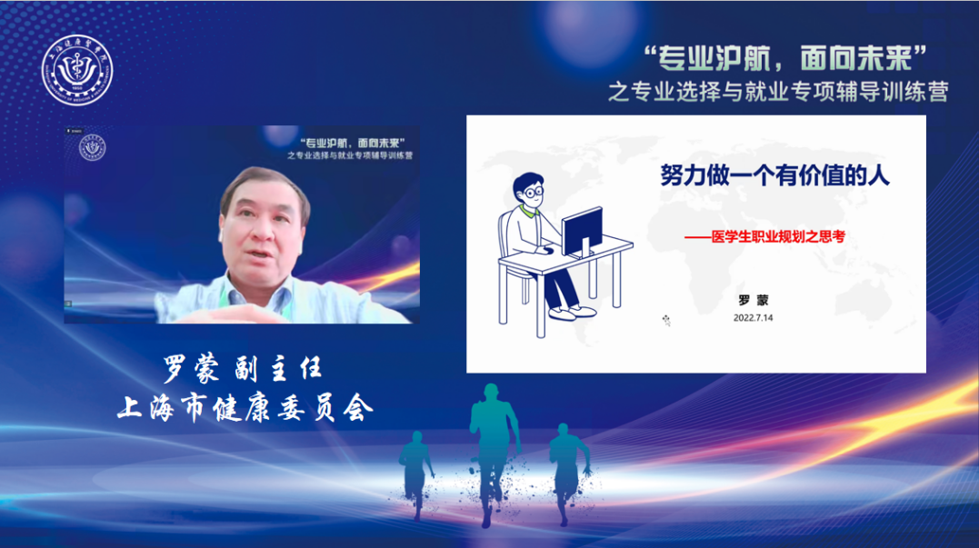 7月14日至15日,由上海市教委学生处指导、上海健康医学院主办,上海健康医学院临床医学院承办的“专业‘沪’航,面向未来”之专业选择与就业专项辅导训练营通过网络平台以直播的方式成功举行。本次训练营分为直播课程和录播课程两大部分,通过不同主题的活动帮助大学生认识专业、了解行业、决定方向,进而更好地规划职业生涯,助力同学们实现更充分、更高质量地就业。在直播课程中邀请了多位教授及行业专家与同学们相聚云端,共话未来。256名来自复旦大学、同济大学、上海大学等多所上海高校学生和我校1803名学生,共计2059名学生参加此次训练营。上海健康医学院党委副书记、副校长唐红梅出席训练营开幕式,学生工作部负责人吕晓丽主持开幕式。