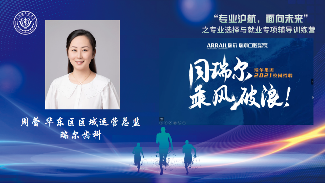 瑞尔齿科华东区区域运营总监周蕾介绍了企业文化,包括使命、运营理念、愿景和价值观,以及企业荣誉和企业优势,解读了行业岗位信息,如招聘对象及招聘流程。
