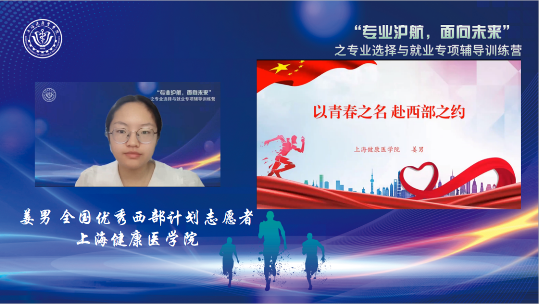 7月14日至15日,由上海市教委学生处指导、上海健康医学院主办,上海健康医学院临床医学院承办的“专业‘沪’航,面向未来”之专业选择与就业专项辅导训练营通过网络平台以直播的方式成功举行。本次训练营分为直播课程和录播课程两大部分,通过不同主题的活动帮助大学生认识专业、了解行业、决定方向,进而更好地规划职业生涯,助力同学们实现更充分、更高质量地就业。在直播课程中邀请了多位教授及行业专家与同学们相聚云端,共话未来。256名来自复旦大学、同济大学、上海大学等多所上海高校学生和我校1803名学生,共计2059名学生参加此次训练营。上海健康医学院党委副书记、副校长唐红梅出席训练营开幕式,学生工作部负责人吕晓丽主持开幕式。