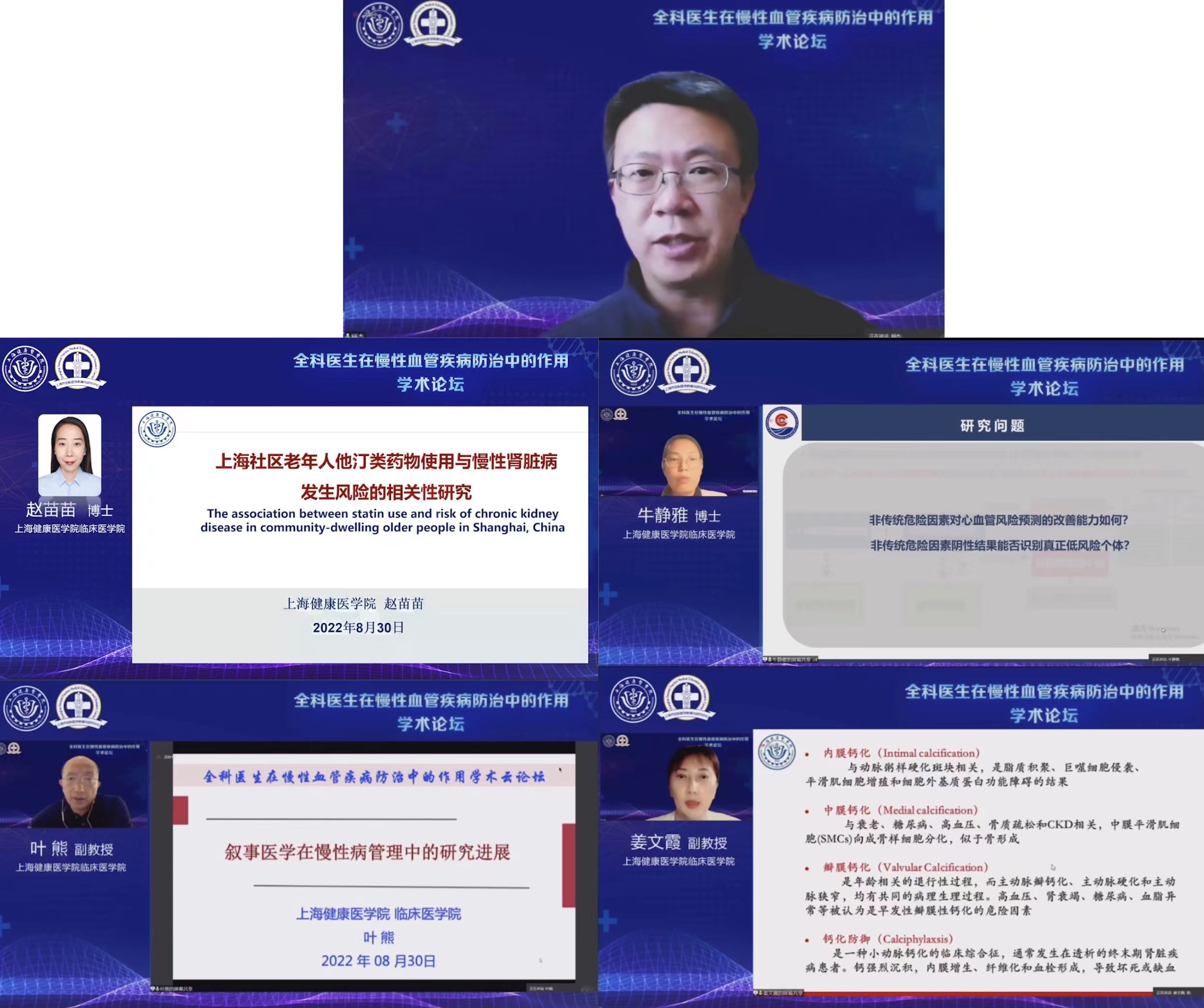 论坛开幕式由临床医学院院长、上海市全科医学教育与研究中心常务副主任蔡巧玲主持,上海健康医学院党委副书记、副校长唐红梅,上海市全科医学教育与研究中心主任、复旦大学附属中山医院全科医学系教授祝墡珠、上海健康医学院附属周浦医院副院长涂平安致辞。三位领导在致辞中一致表达以云端方式齐聚全科医学同行的喜悦,肯定了由全科医生、基层管理者、高校公共卫生专家一起致力于探讨全科医生与慢性血管疾病防治的意义。对未来促进基层全科医生的基层慢性病管理能力、提升全科医学人才培养具有重大的意义。