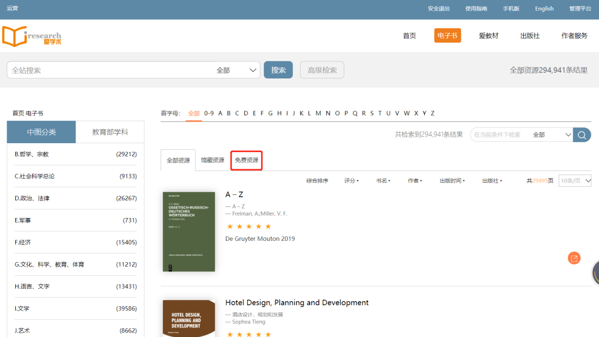 点击免费资源标签,即可检索到平台全部OA免费资源。