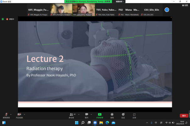 本次夏令营邀请了日本藤田医科大学放射线专业教师开展多场学术讲座,包括AI的背景与基础及其在医学中的应用、放射治疗的基本原理、放射技术临床应用、核医学技术、乳腺癌治疗技术等内容。另外,还特别邀请到了来自日本九州大学的教授为营员们开展虚拟现实技术在医疗放射领域的应用讲座。期间,还组织了小组活动讨论、作业提交、答疑、发表会、点评等多项活动,以及校园和附属医院放射科线上参观。