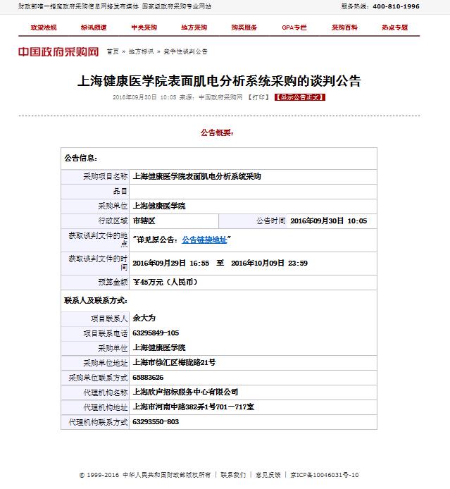 上海健康医学院表面肌电分析系统采购的谈判公告