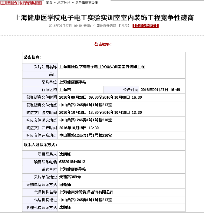 上海健康医学院电子电工实验实训室室内装饰工程竞争性磋商