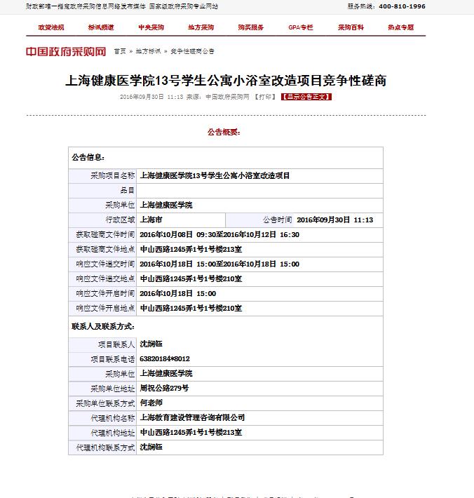上海健康医学院13号学生公寓小浴室改造项目竞争性磋商