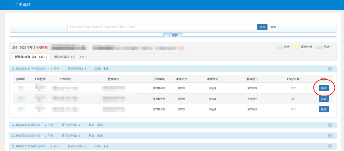 1.本次选课采用抢选制,各课程先选先得;