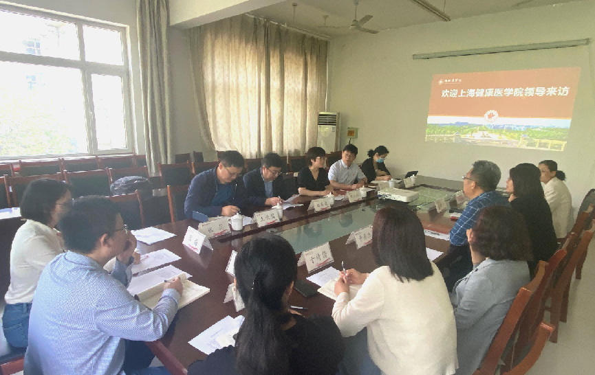 11日,在潍坊医学院行政楼四楼西会议室召开座谈会。会上,成敏简要介绍了潍坊医学院学校的办学理念、发展概况、学科专业建设、人才培养及质量文化等工作的开展情况。南德红介绍了上海健康医学院的人才培养、教育教学情况,特别重点介绍了我校创新创业人才培养的举措与成效。会上,教师们同潍坊医学院公共卫生学院和管理学院负责人分别就开办专业建设情况、招生就业、课程建设、教学实验室建设、实习实训基地建设方面开展深入交流。交流活动持续了2个多小时,讨论热烈,针对性强,做到了既“身”到问题、更“心”入问题。