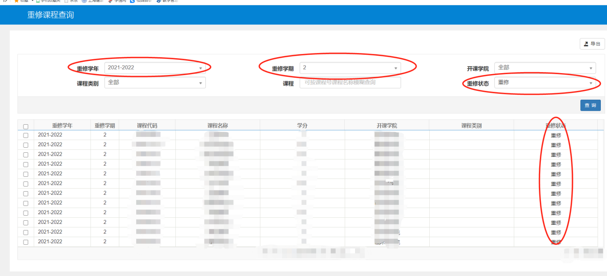 2.可通过“重修课程查询”确认重修资格